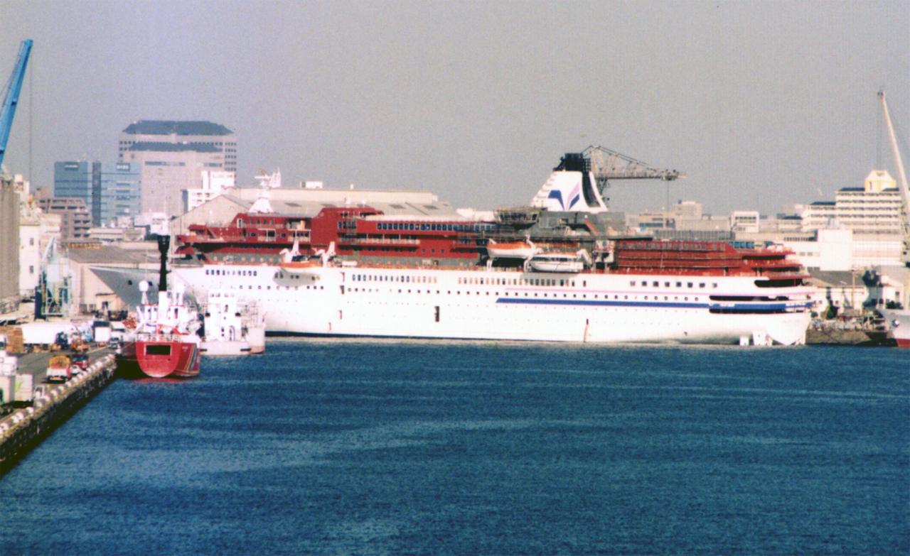 日本クルーズ客船株式会社 (Japan Cruise Line Co., Ltd.) 運航。 Built: 1998, IMO: 9160011, MMSI: 431281000 Gross tonnage: 26,518t, Length: 183.0m, Beams: 25.0m |