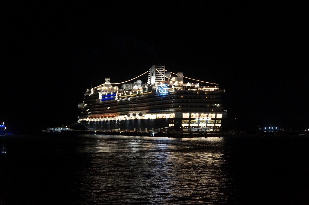 美しい写真ですね。夜の豪華客船の写真はとても趣があって好きです。