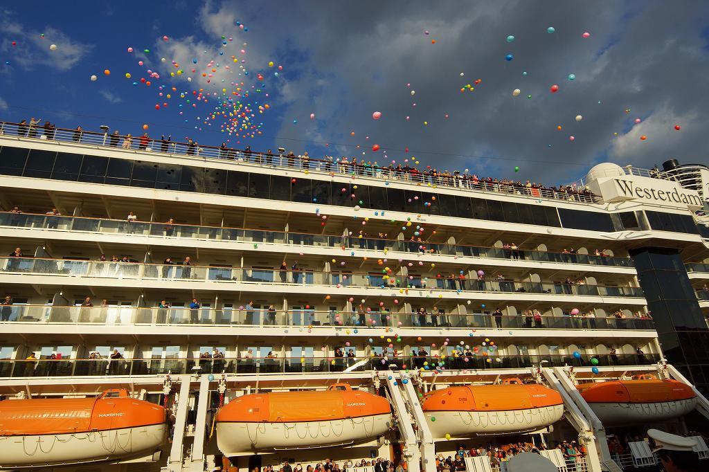 出港のシーンを盛り上げるイベントを切り取ったような写真をありがとうございます。クルーズの始まりはワクワクしますね。