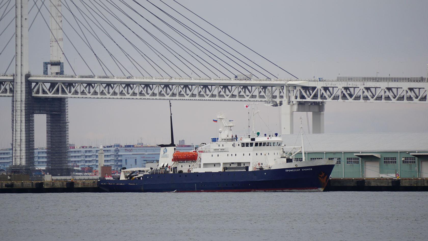 大桟橋ふ頭から山下ふ頭に着岸中のクロモフを撮影しました。 |