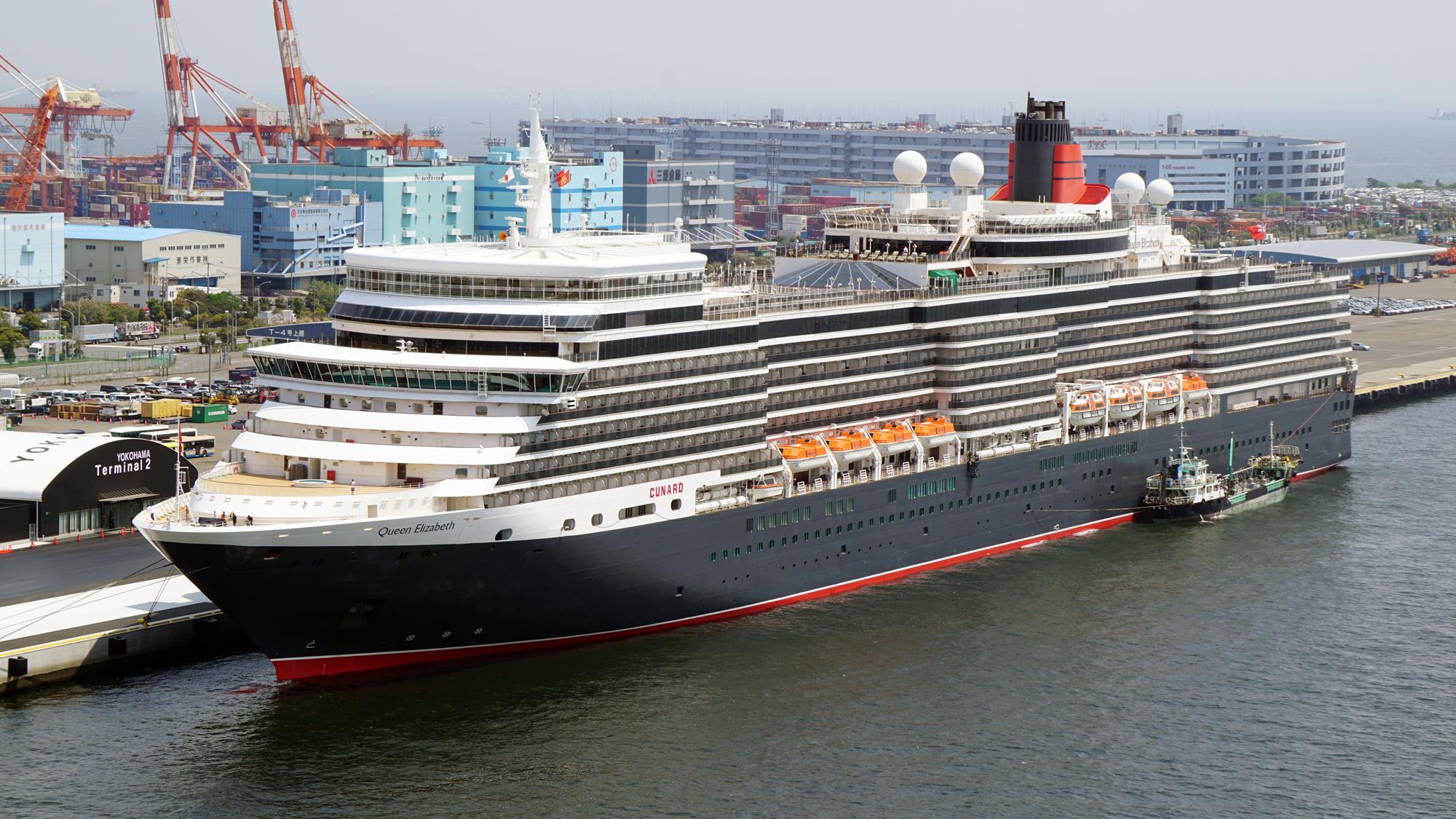 キュナードライン (Cunard Line) 運航。 Built: 2010, IMO: 9477438, MMSI: 310625000 Gross tonnage: 92,000t, Length: 293.9m, Beams: 32.3m |