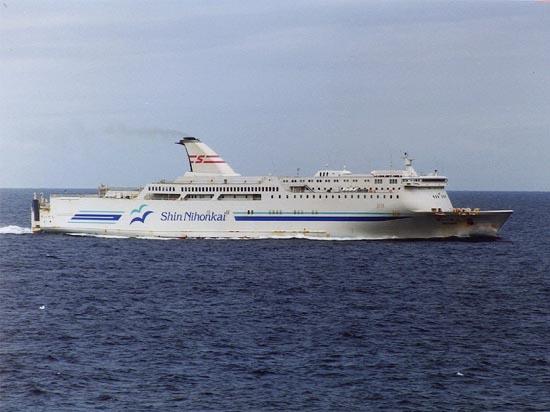 新日本海フェリー株式会社 (Shin Nihonkai Ferry Co., Ltd) 運航。 Built: 1996, IMO: 9116278, MMSI: 431860000 Gross tonnage: 17,350t, Length: 199.5m, Beams: 25.0m |