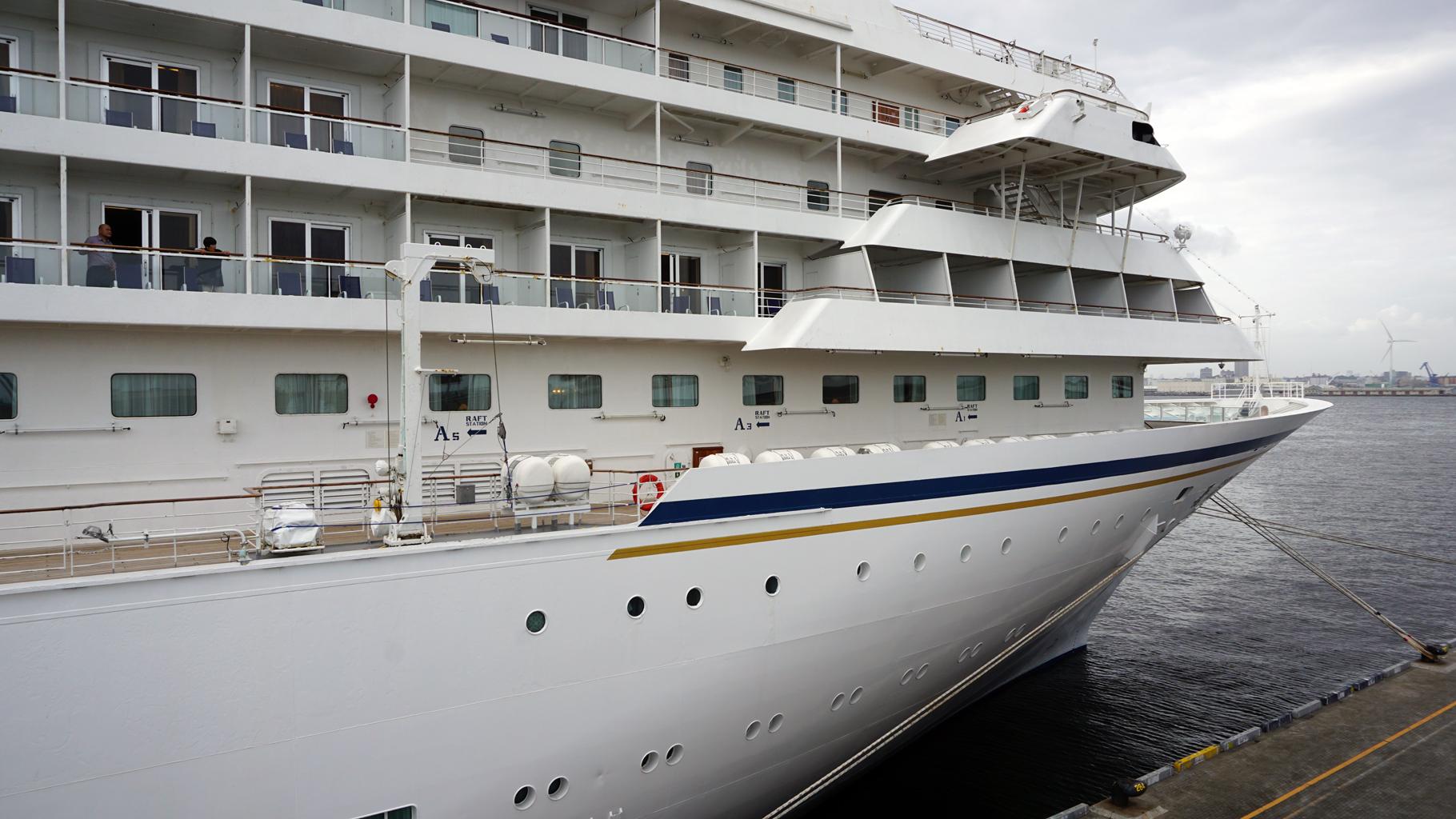 郵船クルーズ株式会社 (Yusen Cruise Co., Ltd.) 運航。 Built: 1990, IMO: 8806204, MMSI: 432545000 Gross tonnage: 50,142t, Length: 241.0m, Beams: 29.6m |