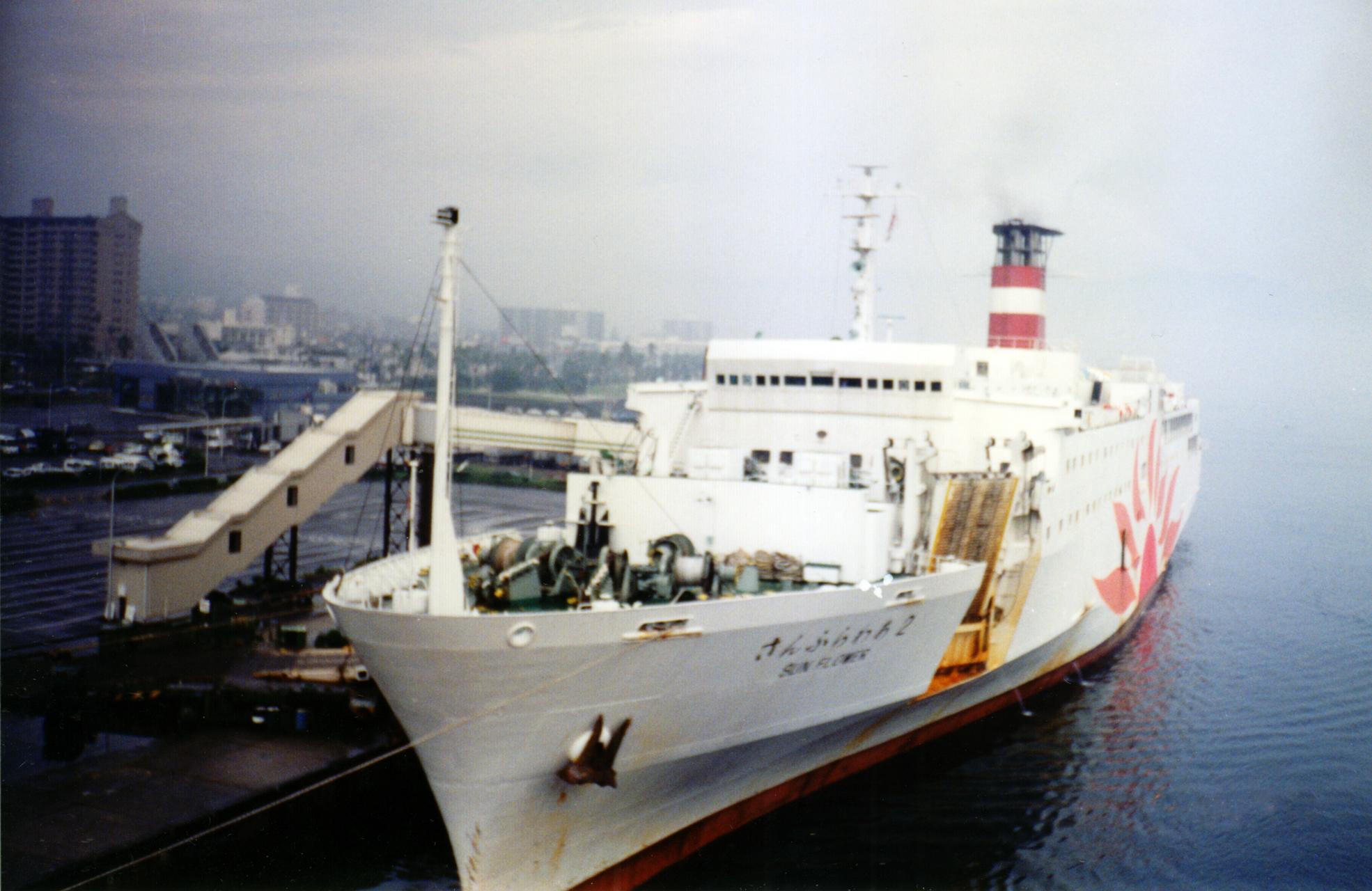 関西汽船株式会社 (Kansai Kisen Co., Ltd.) 運航。 Built: 1972, IMO: 7206469, MMSI: n/a Gross tonnage: 12,105t, Length: 185.0m, Beams: 24.0m |