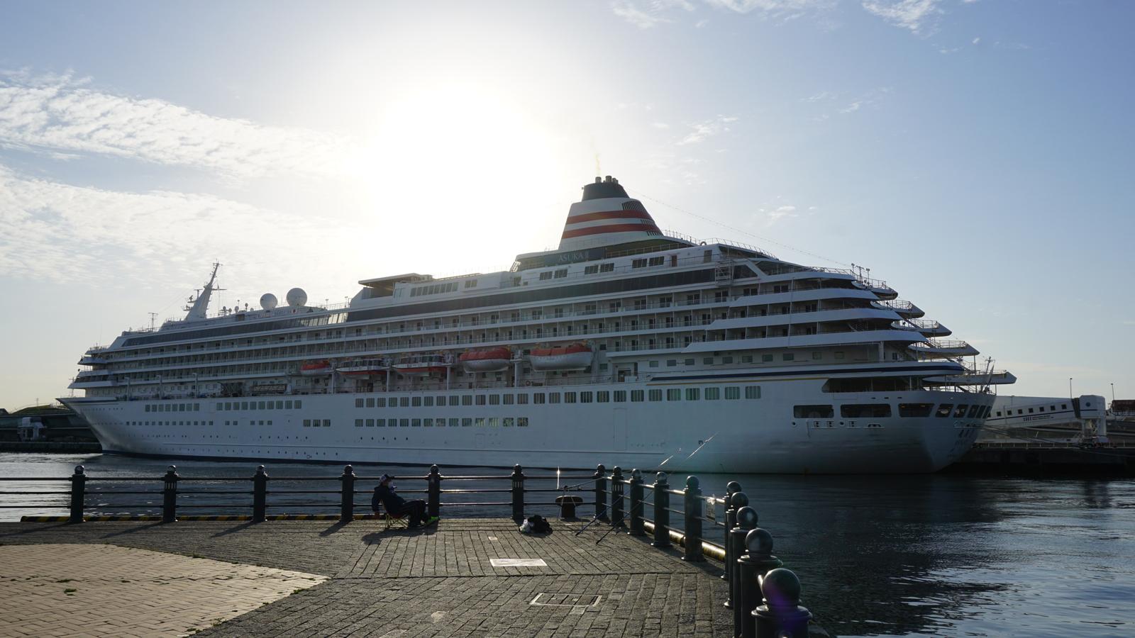 早朝の「飛鳥II」を見に臨港パークに行きました。釣り客が何人かいらっしゃいましたが、ひっそりとした光景でした。 |