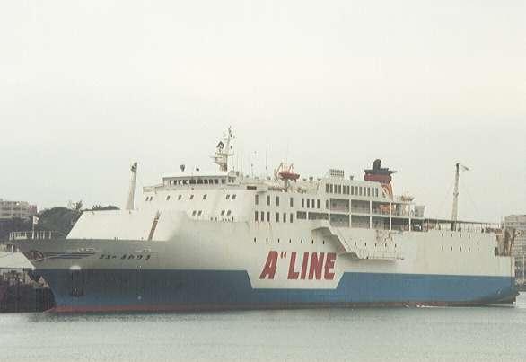大島運輸株式会社 (Oshima Transport Inc.) 運航。 Built: 1992, IMO: 9045895, MMSI: n/a Gross tonnage: 6,412t, Length: 146.0m, Beams: 22.0m |