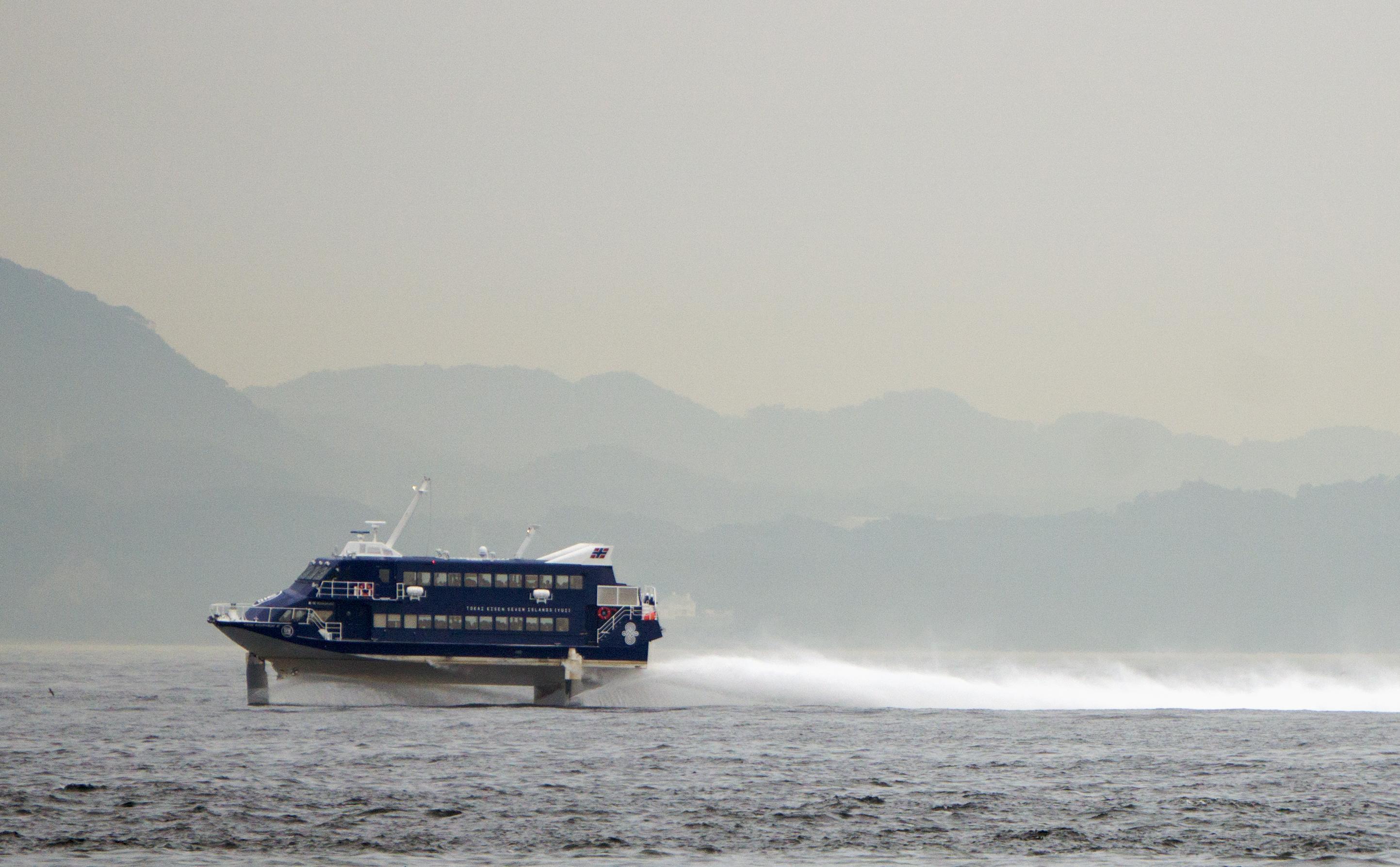 東海汽船株式会社 (Tokai Kisen Co., Ltd.) 運航。 Built: 2020, IMO: n/a, MMSI: 431014933 Gross tonnage: 176t, Length: 27.4m, Beams: 8.5m |