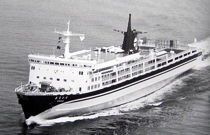 太平洋フェリー株式会社 (Taiheiyo Ferry Co., Ltd.) 運航。 Built: 1972, IMO: 7213072, MMSI: n/a Gross tonnage: 9,779t, Length: 167.0m, Beams: 24.0m |