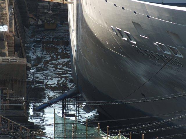 フィンスタビライザーがはっきり見えますね。最近はクルーズ船にとって試練の時が続いていますが、感染症の蔓延が去って力強く運行再開される日が待ち遠しいですね。