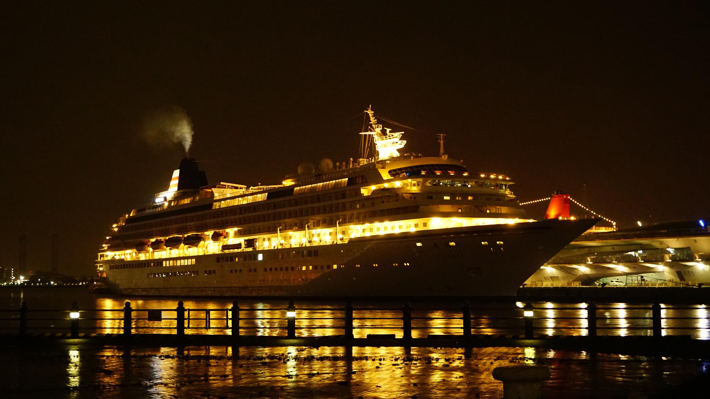 夜の大桟橋に着岸中 |