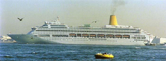 P&O クルージズ (P&O Cruises) 運航。 Built: 1995, IMO: 9050137, MMSI: 310529000 Gross tonnage: 69,153t, Length: 260.0m, Beams: 32.0m |