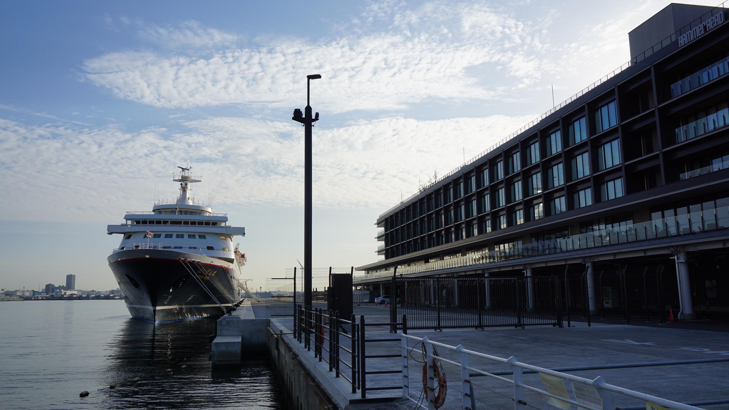 商船三井客船株式会社 (Mitsui O.S.K. Passenger Lines Ltd.) 運航。 Built: 1990, IMO: 8817631, MMSI: 431302000 Gross tonnage: 22,472t, Length: 167.0m, Beams: 24.0m |
