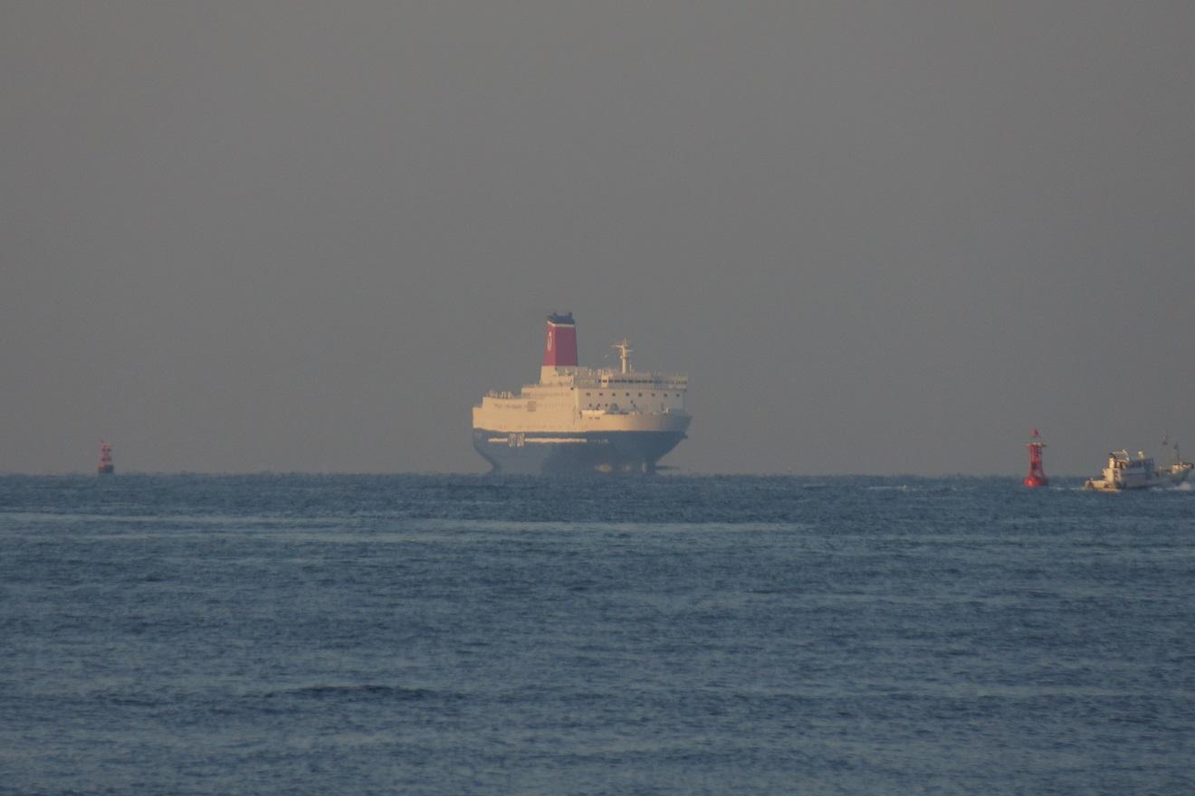 海水温の関係からか,船が浮かび上がって見えますね。興味深いショットをありがとうございます。