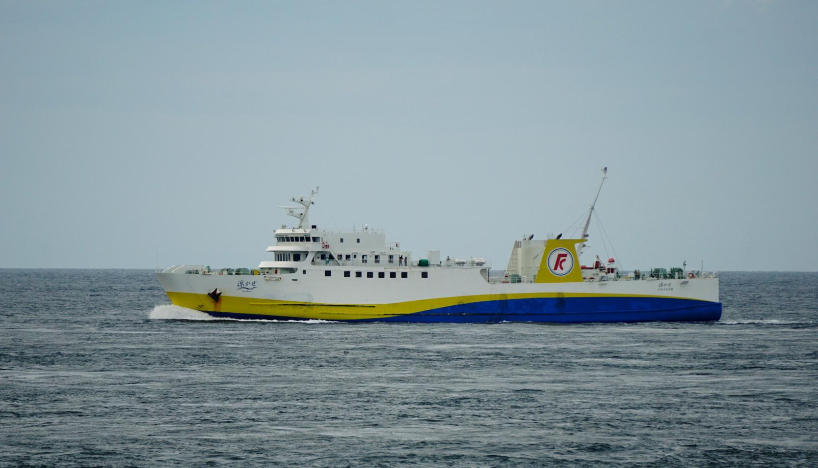 「遊なぎ」とすれ違った「涼かぜ」です。小さな船ですがネーミングがクールです。豊予海峡を1時間10分で結んでいます。 |