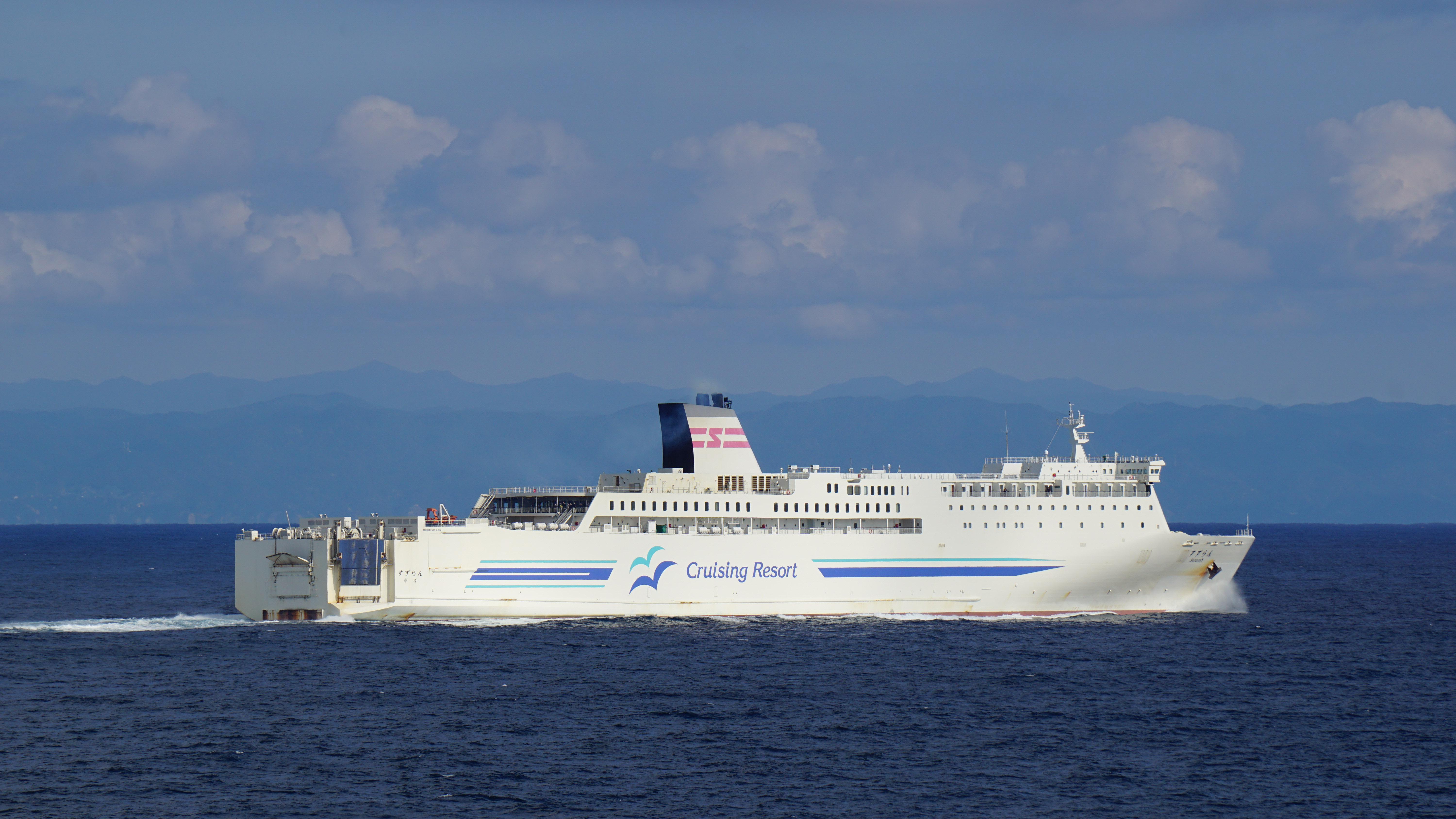 東京九州フェリー株式会社 (Tokyo Kyushu Ferry Co. Ltd.) 運航。 Built: 2012, IMO: 9606895, MMSI: 431003496 Gross tonnage: 17,000t, Length: 224.5m, Beams: 26.0m |
