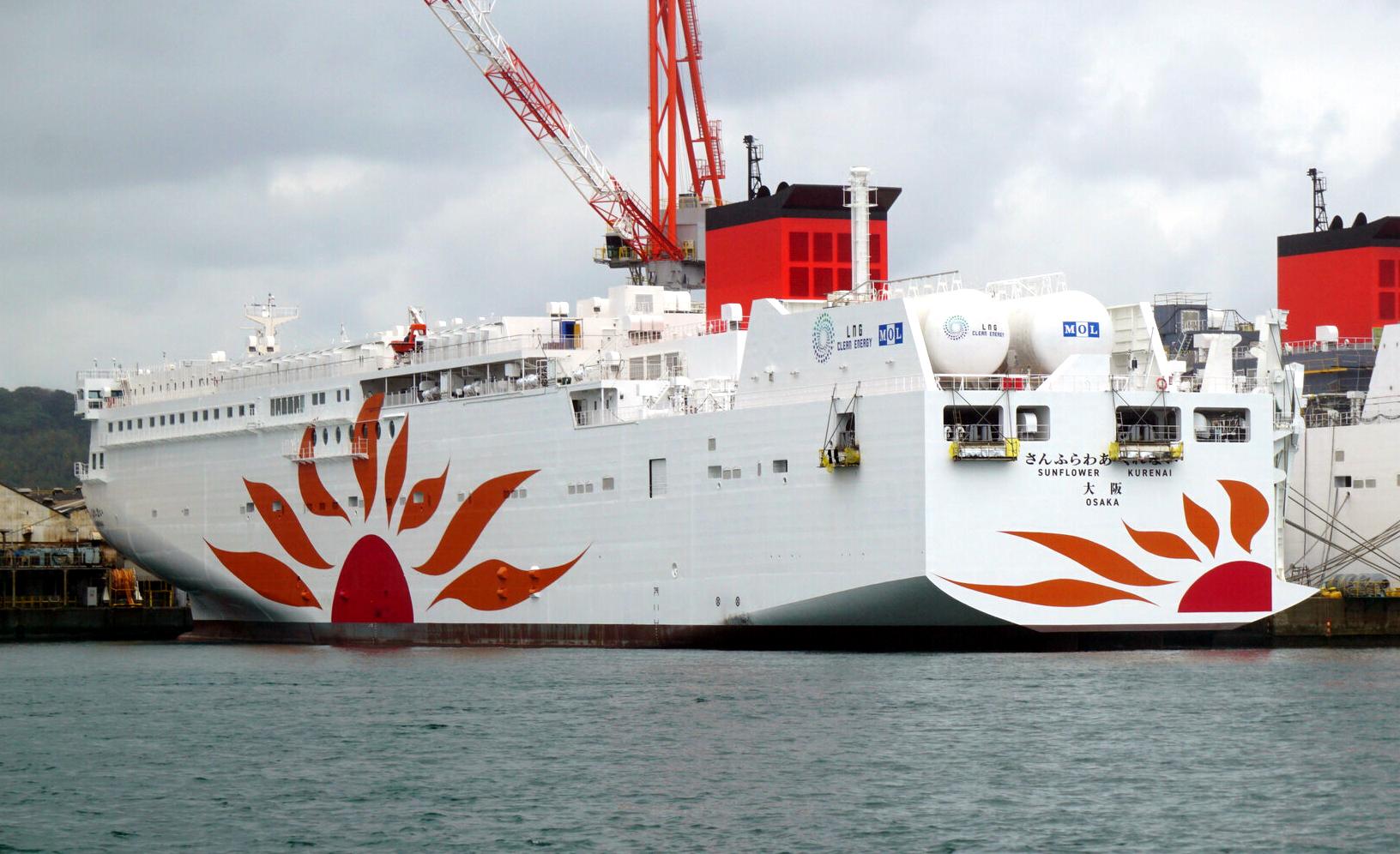 株式会社フェリーさんふらわあ (Ferry Sunflower Ltd.) 運航。 Built: 2022, IMO: 9900112, MMSI: 431019888 Gross tonnage: 17,300t, Length: 199.0m, Beams: 28.0m |