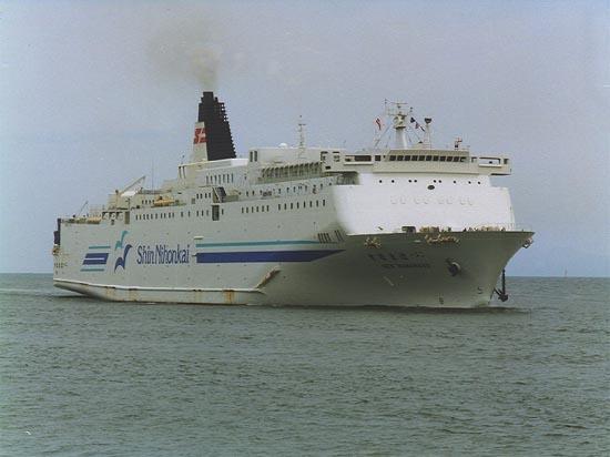 新日本海フェリー株式会社 (Shin Nihonkai Ferry Co., Ltd) 運航。 Built: 1987, IMO: 8604265, MMSI: n/a Gross tonnage: 17,393t, Length: 185.0m, Beams: 27.0m |