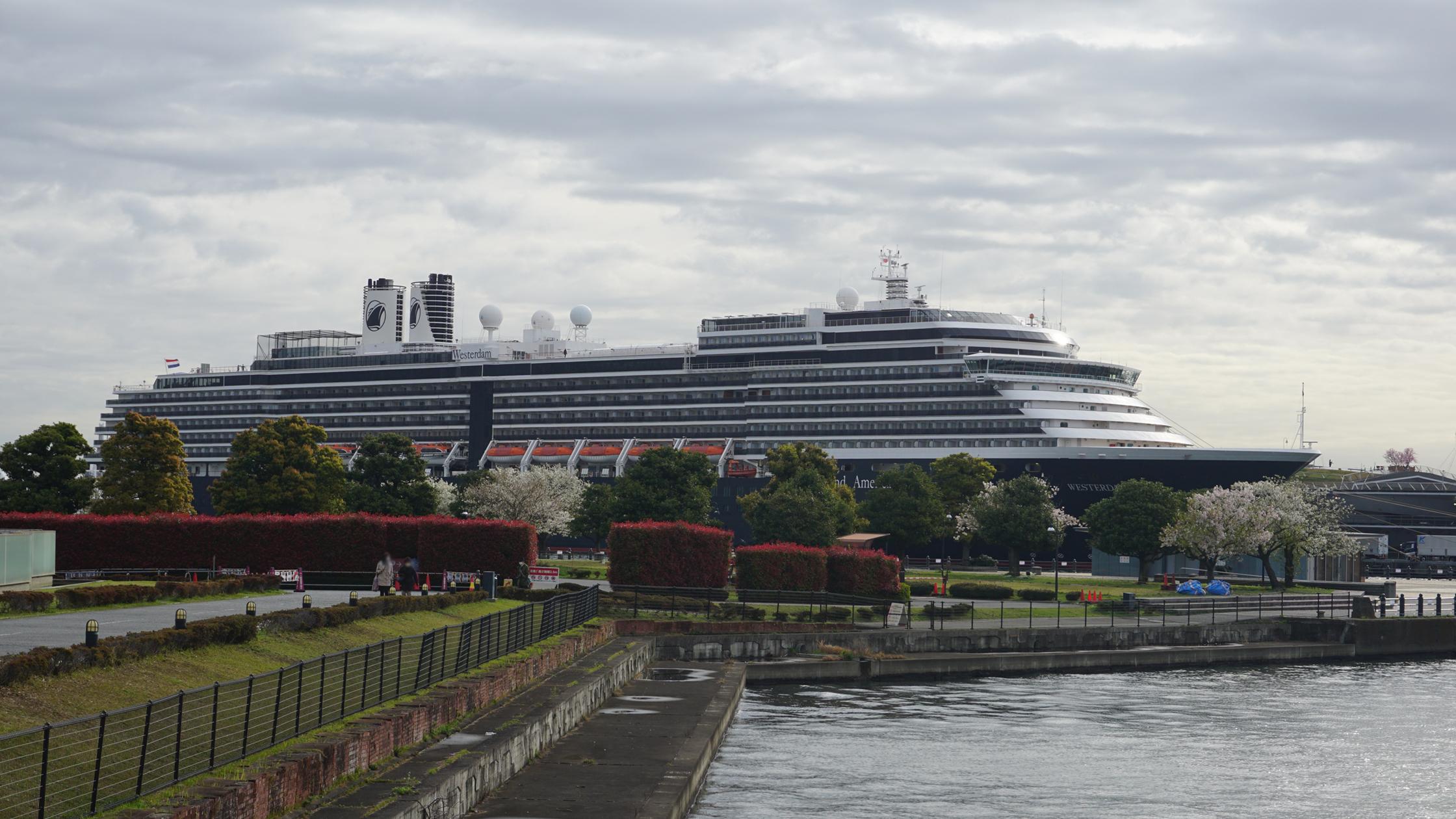 コロナ禍が開けた横浜港にウェステルダムが戻ってきてくれました。春の花が満開です。 |
