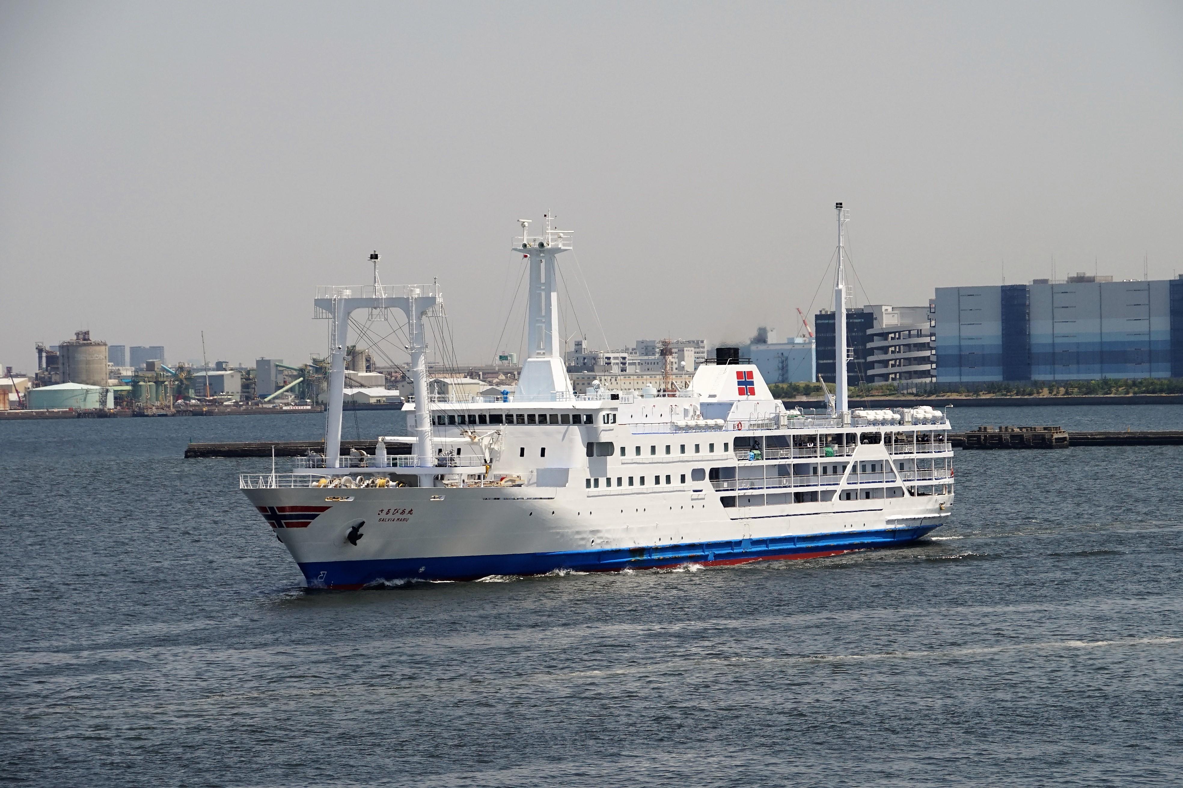 東海汽船株式会社 (Tokai Kisen Co., Ltd.) 運航。 Built: 1992, IMO: 9054080, MMSI: 431100403 Gross tonnage: 5,019t, Length: 121.0m, Beams: 15.0m |