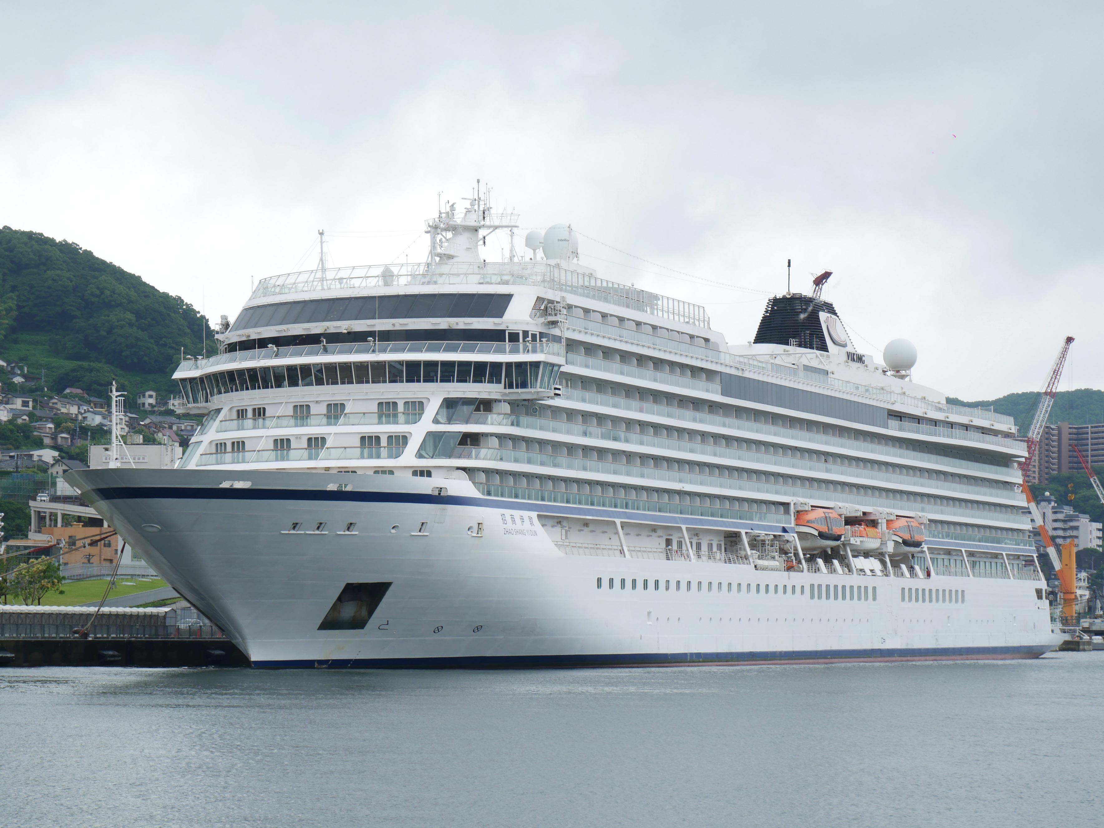 長崎港、松が枝埠頭に停泊中のクルーズ船「Zhao Shang Yi Dun」。2023年6月21日撮影。 The cruise ship "Zhao Shang Yi Dun" is anchored in Nagasaki Port. |