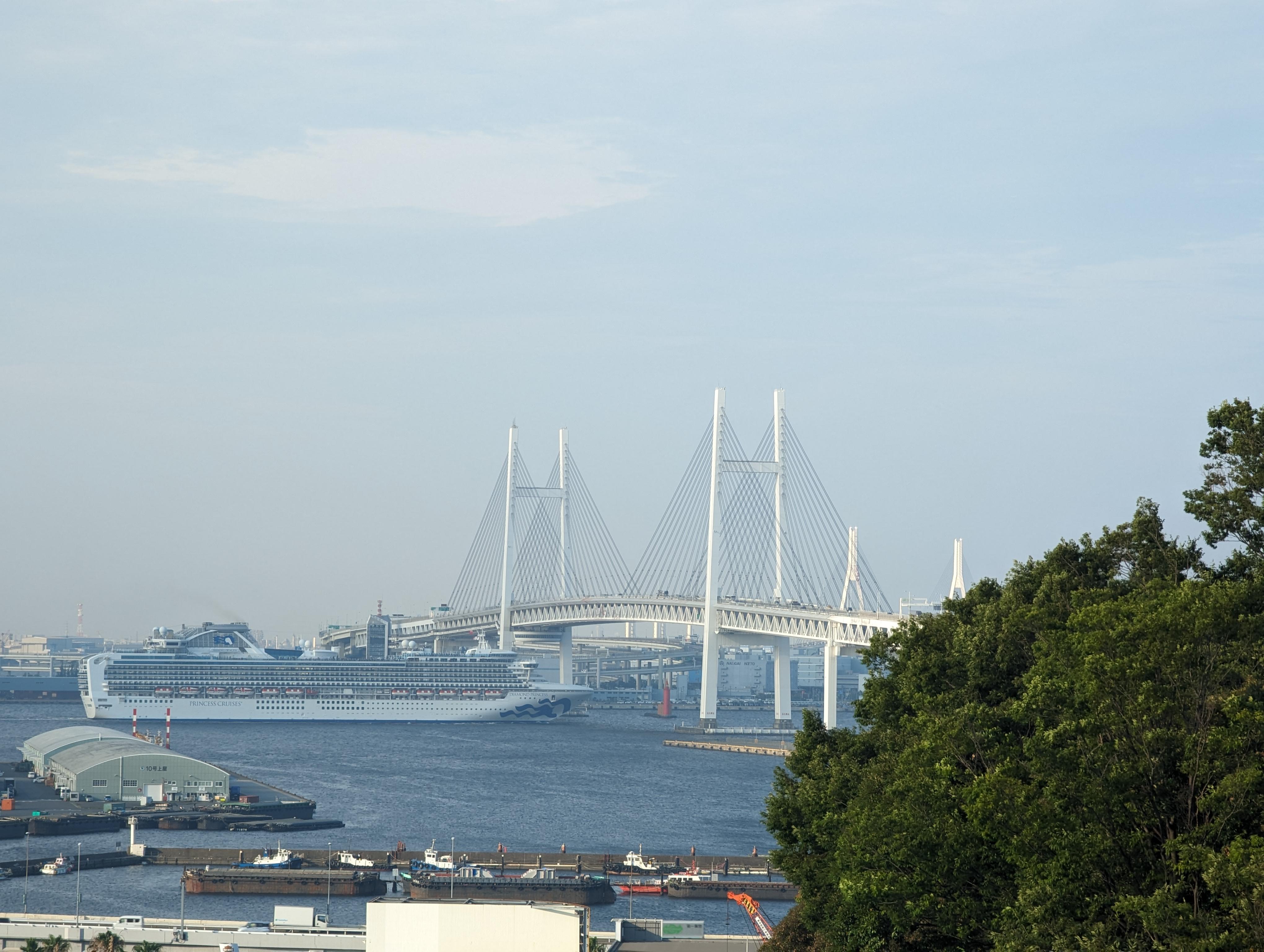 夕方の横浜港をダイヤモンドプリンセスが出港していきました。 |