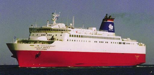 株式会社マリンエキスプレス (Marine Express Co., Ltd.) 運航。 Built: 1992, IMO: 9035096, MMSI: n/a Gross tonnage: 11,581t, Length: 170.0m, Beams: 25.0m |