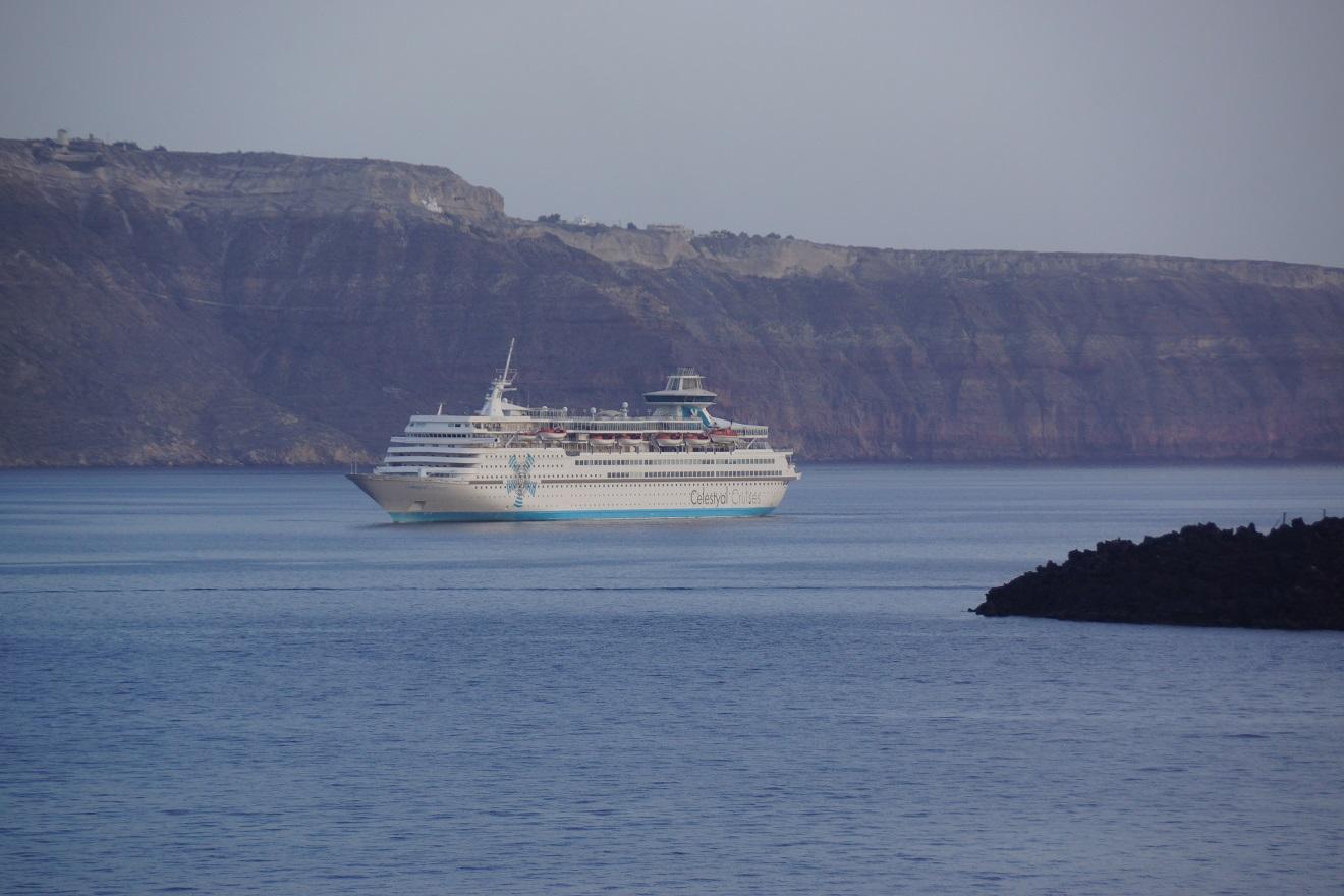 断崖絶壁のサントリーニの湾に停泊している姿はいつ見てもきれいですね。Celestyal Cruisesはピレウスから定期的に出港しているので旅行のパーツに取り入れやすいですね。