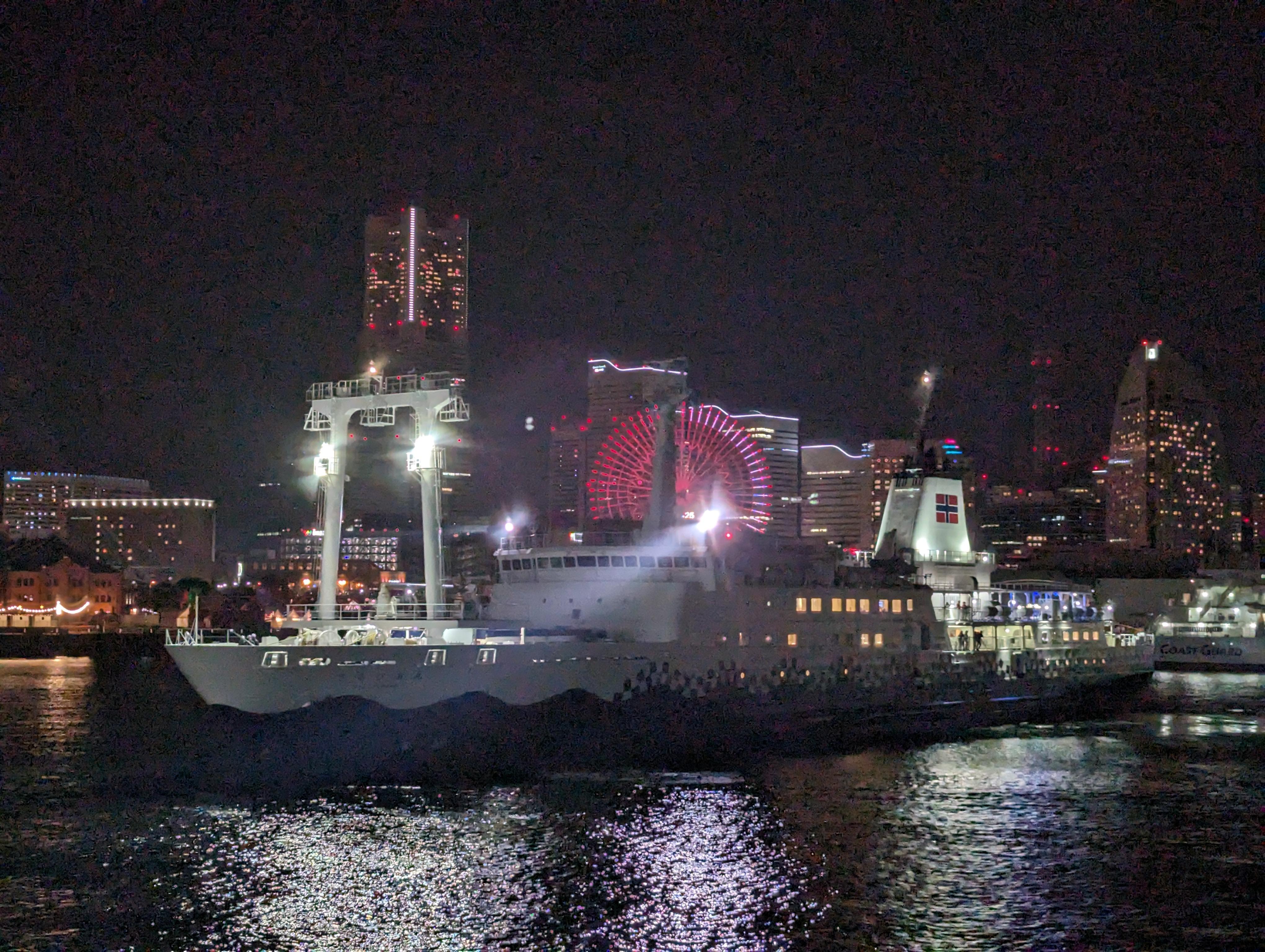 夜の横浜港に入港 |