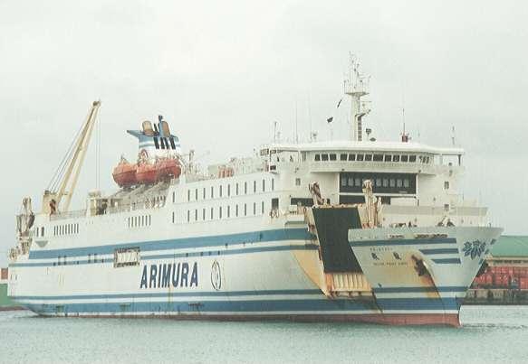 有村産業株式会社 (Arimura Sangyo Co., Ltd.) 運航。 Built: 1995, IMO: 9112246, MMSI: n/a Gross tonnage: 10,351t, Length: 167.0m, Beams: 22.0m |
