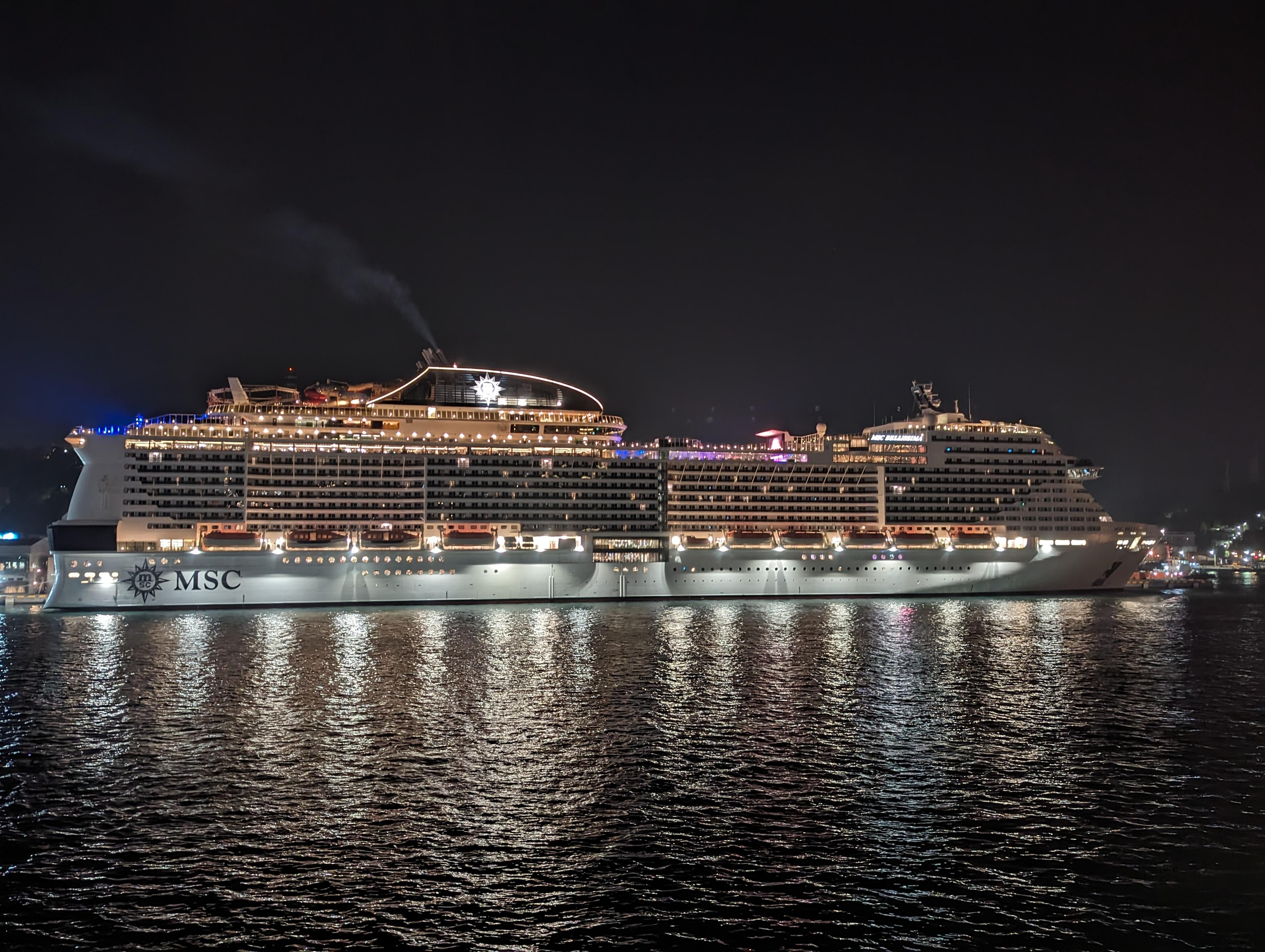 MSCクルージズ (MSC Cruises (MSC Crociere)) 運航。 Built: 2019, IMO: 9760524, MMSI: 636015263 Gross tonnage: 171,598t, Length: 316.0m, Beams: 52.0m |