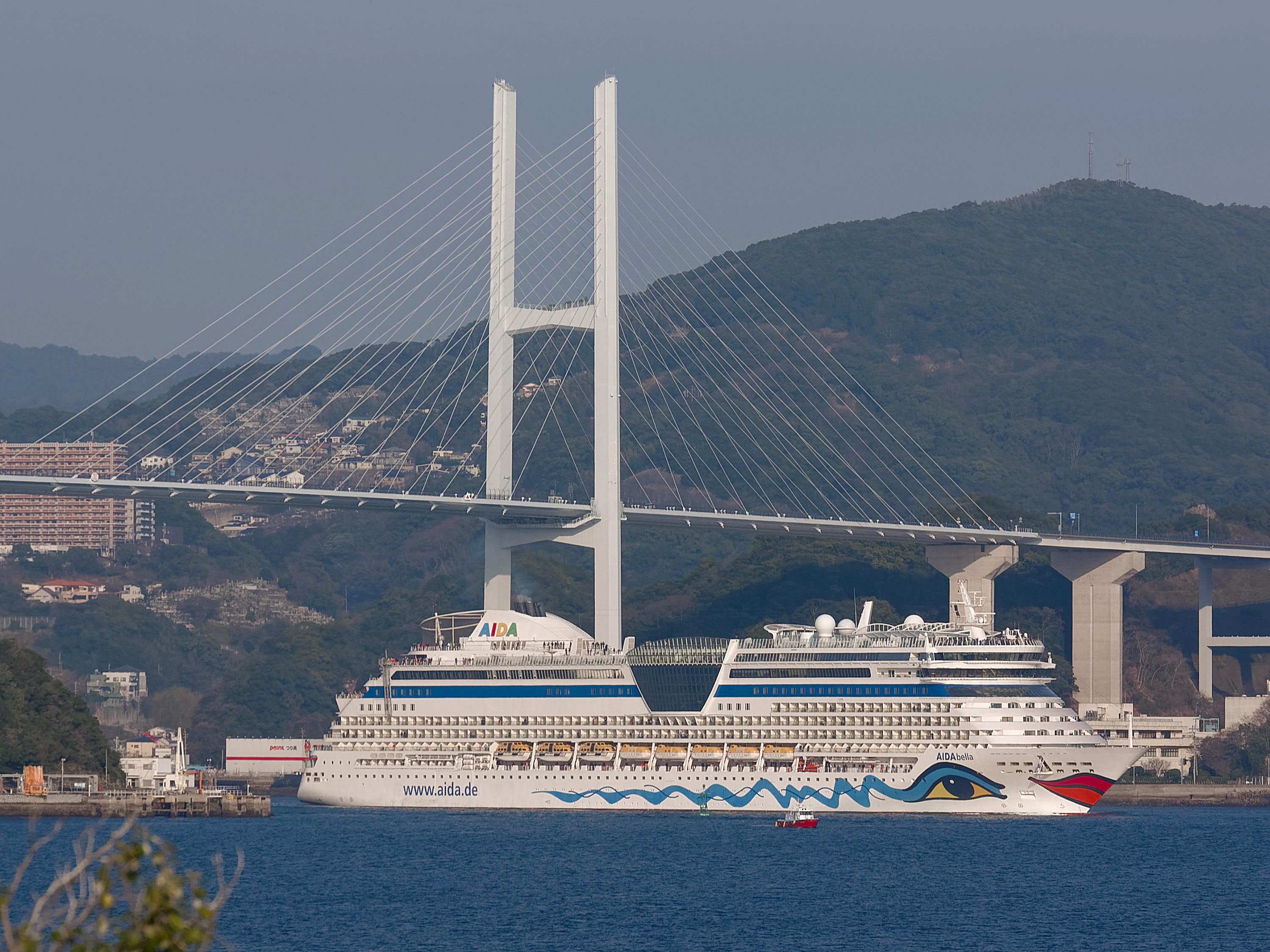 長崎港を後にする「アイーダベラ」(2024年3月14日撮影) |