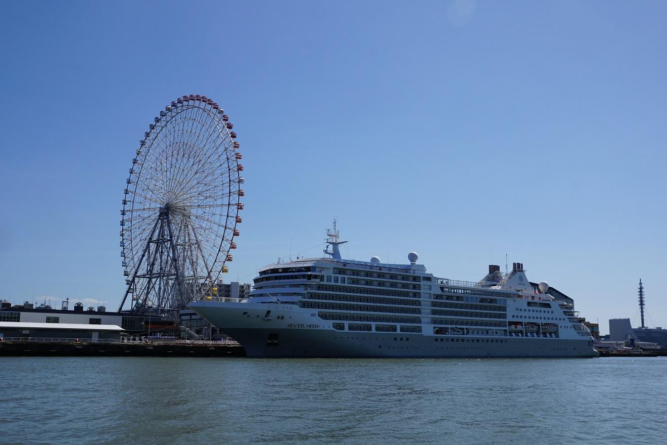 豪華なラグジュリー客船ですね。Silver Museなどは横浜港にも寄港していましたが,Silver Moonは初入港でしょうか?