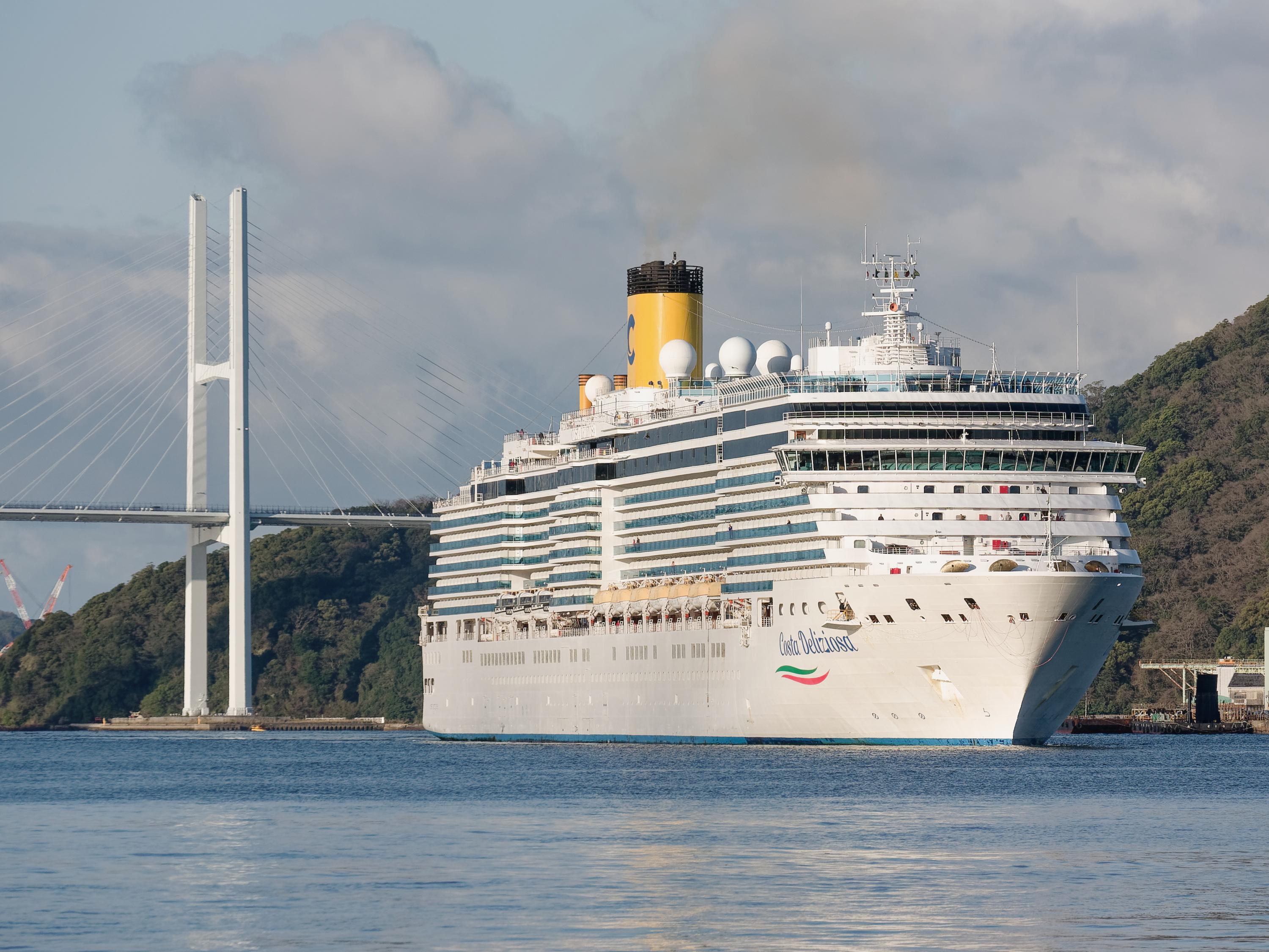 朝日を浴びて長崎港へ入港する「コスタ・デリジオサ」