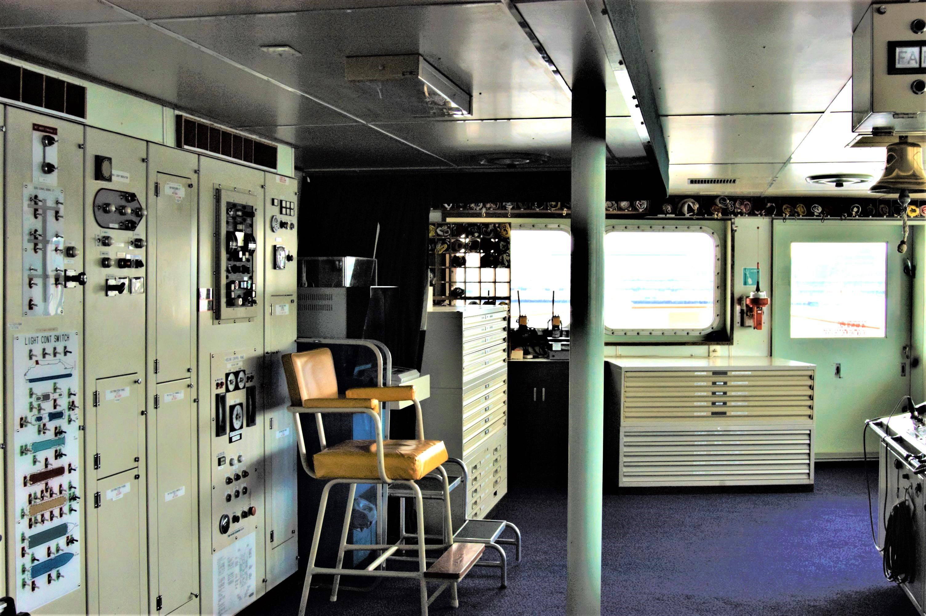 にっぽん丸一般公開時の通路側からの操舵室後方 |