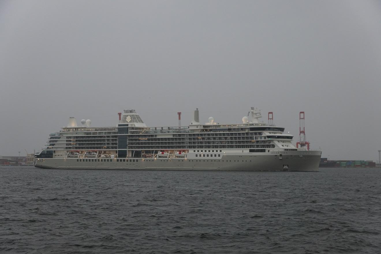 10月3日撮影 SilverSea一連の船容と比べてややオーソドックスかな?処で船首の立角が直立では無いけどかなり立ってる!のが一大特徴? |