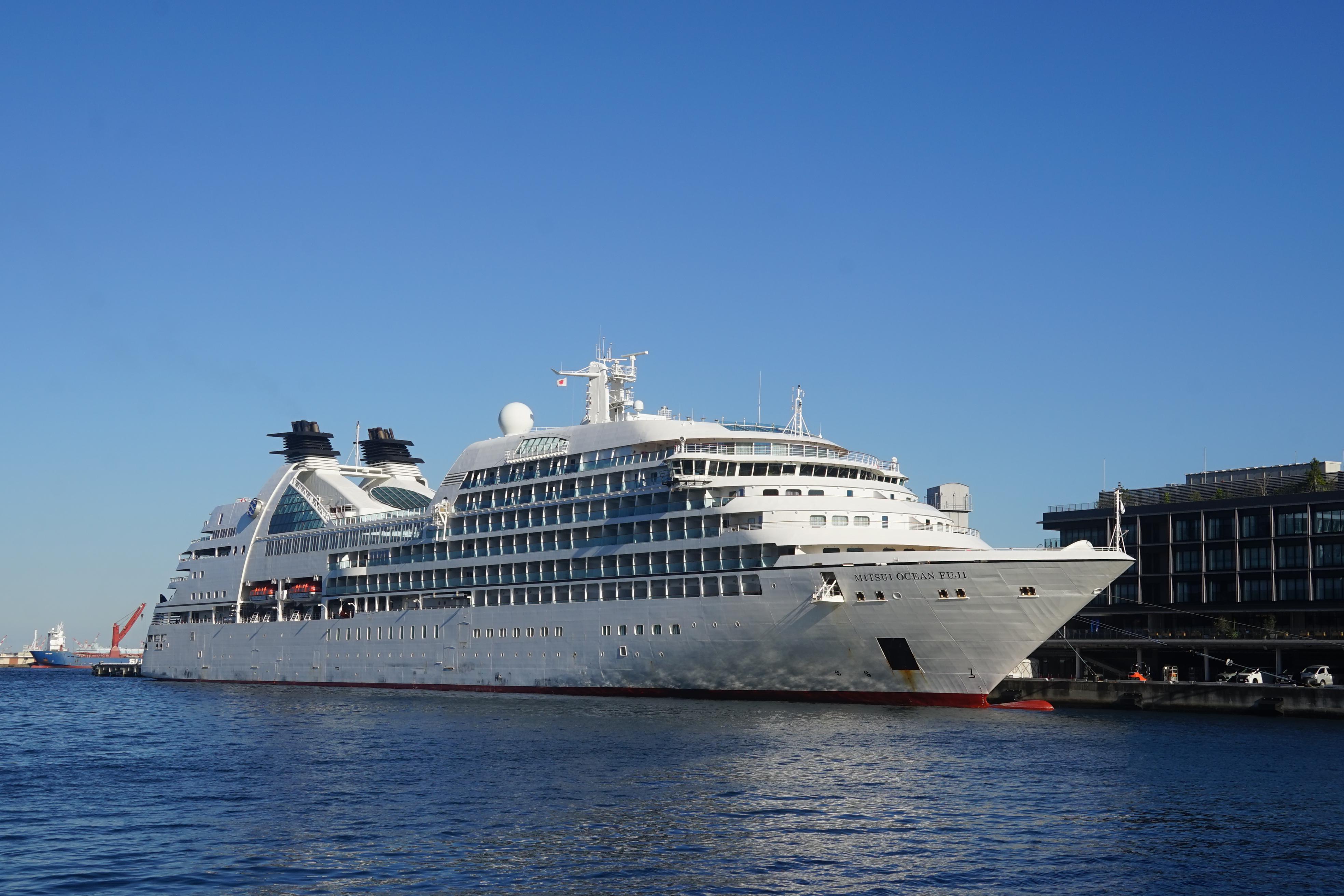商船三井クルーズ株式会社 (MOL Cruises, Ltd.) 運航。 Built: 2009, IMO: 9417086, MMSI: n/a Gross tonnage: 32,477t, Length: 200.0m, Beams: 26.0m |