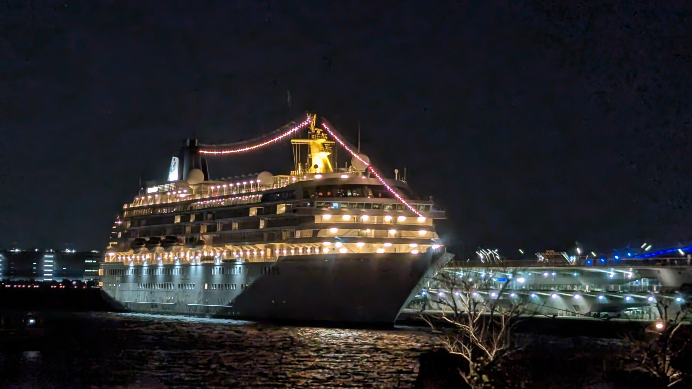 風の強い日でしたが,クリスタルシンフォニーが久しぶりに横浜港に入港しました。 |