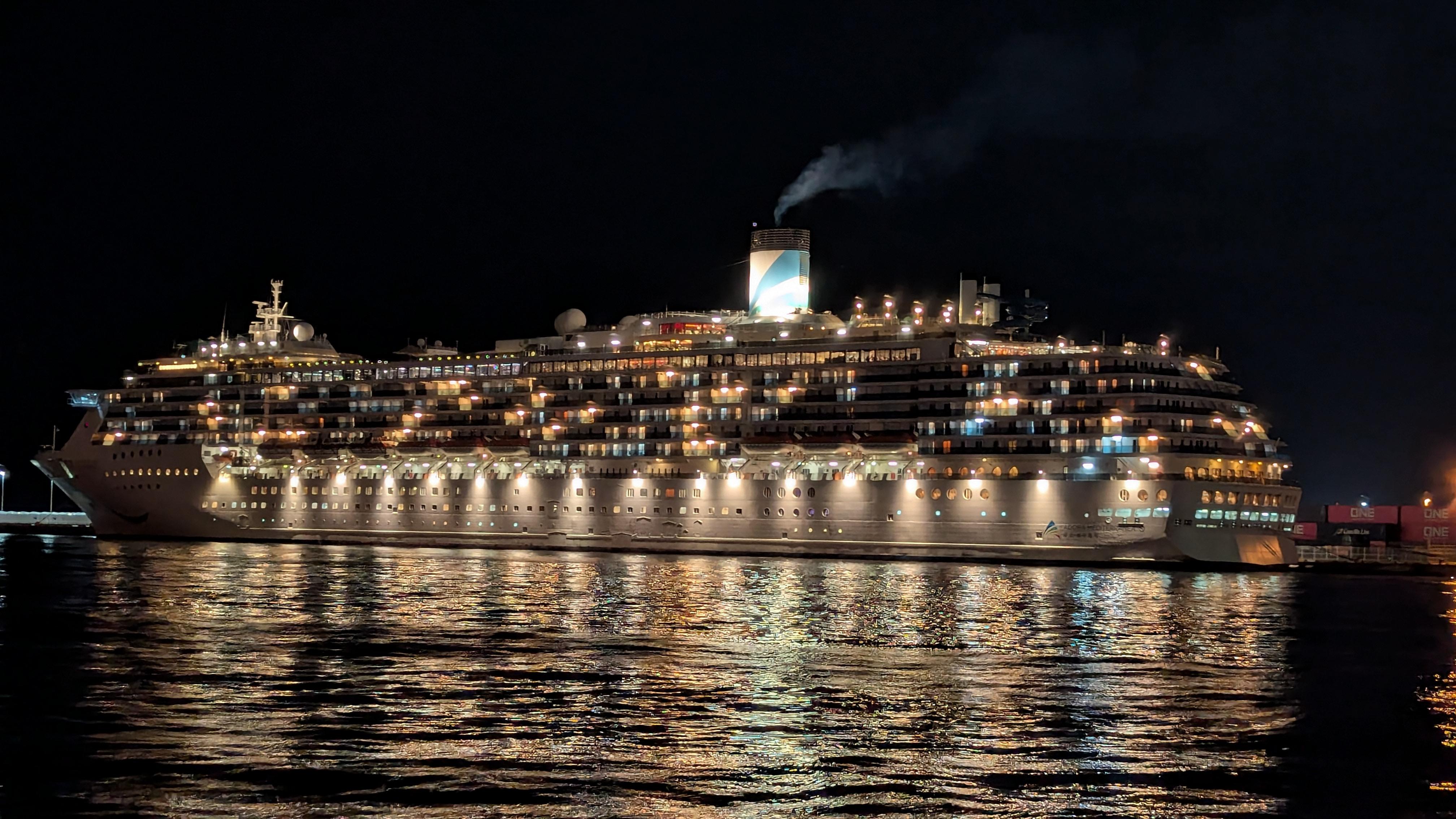 アドーラクルーズ (Adora Cruise) 運航。 Built: 2003, IMO: 9237345, MMSI: 247088200 Gross tonnage: 85,700t, Length: 292.5m, Beams: 32.2m |