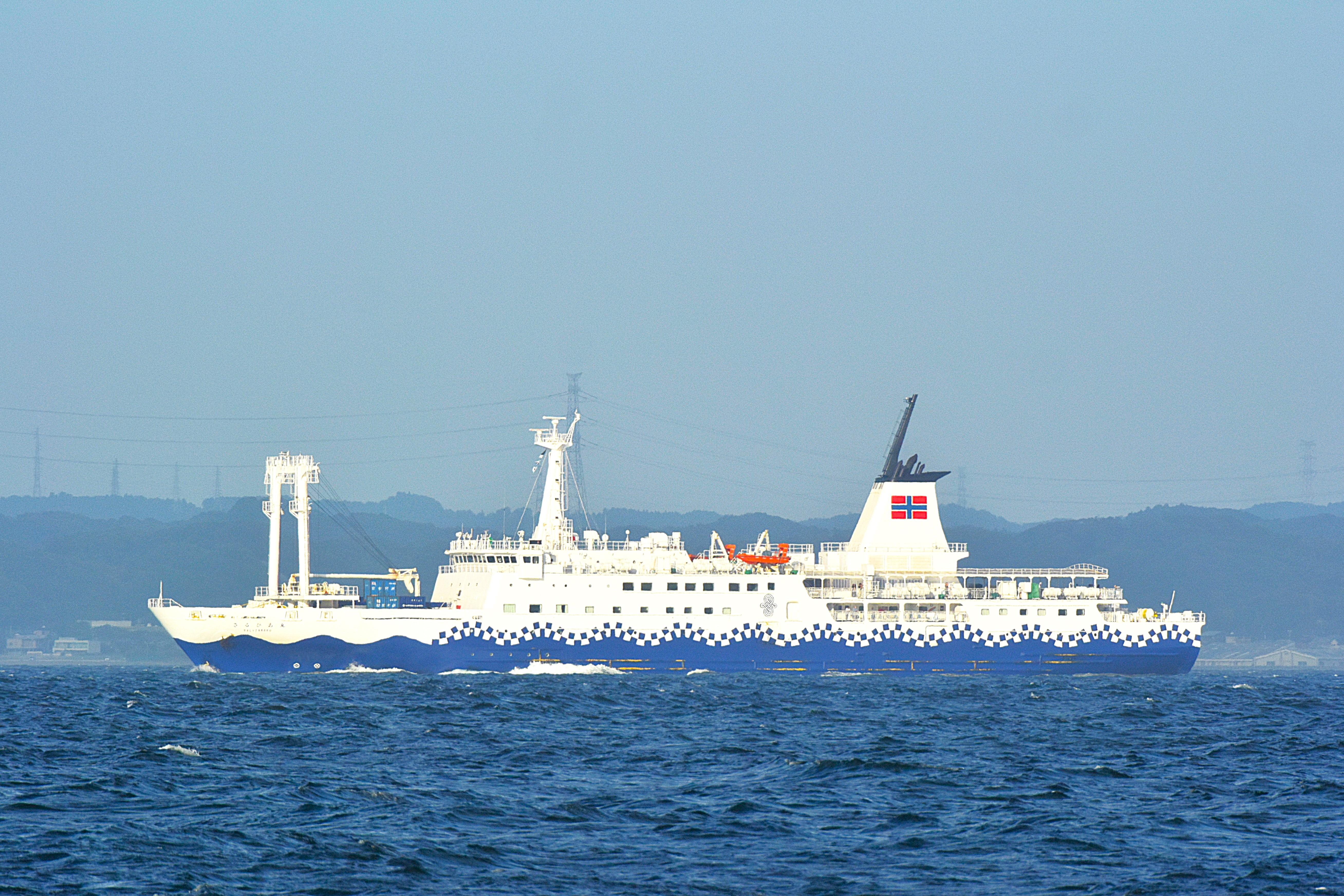 東海汽船株式会社 (Tokai Kisen Co., Ltd.) 運航。 Built: 2020, IMO: 9875484, MMSI: 431692000 Gross tonnage: 6,200t, Length: 118.0m, Beams: 17.0m |