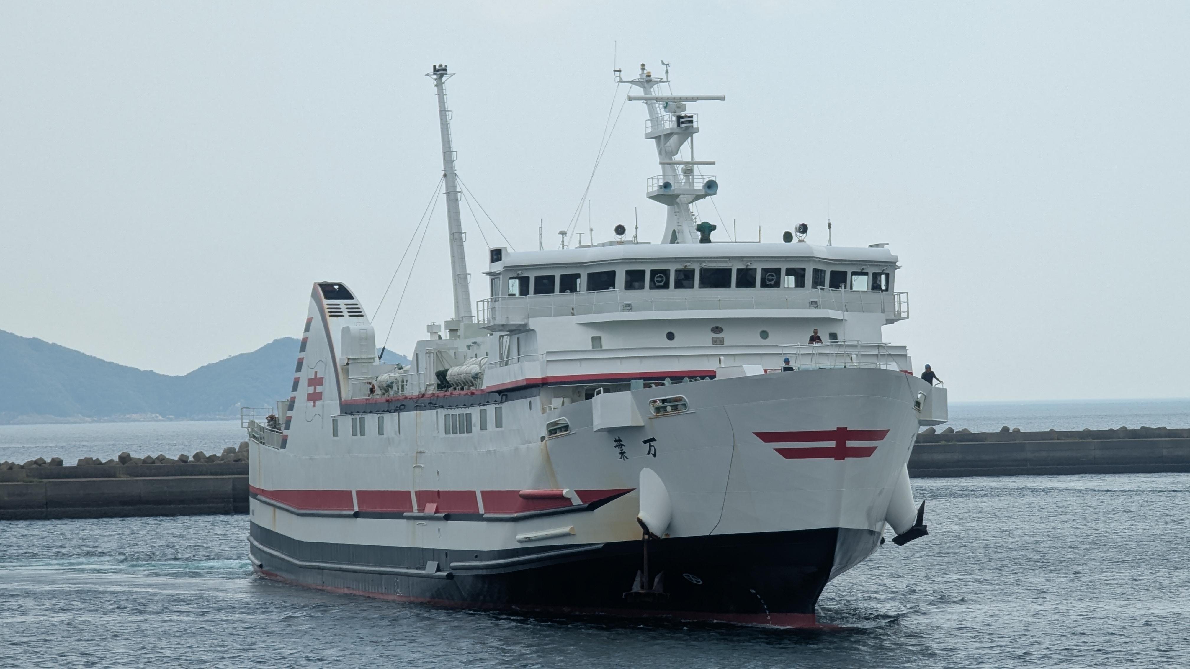 九州商船株式会社 (Kyusyu Shosen Co.,Ltd.) 運航。 Built: 2011, IMO: 9610133, MMSI: 431002428 Gross tonnage: 1,560t, Length: 85.6m, Beams: 10.7m |