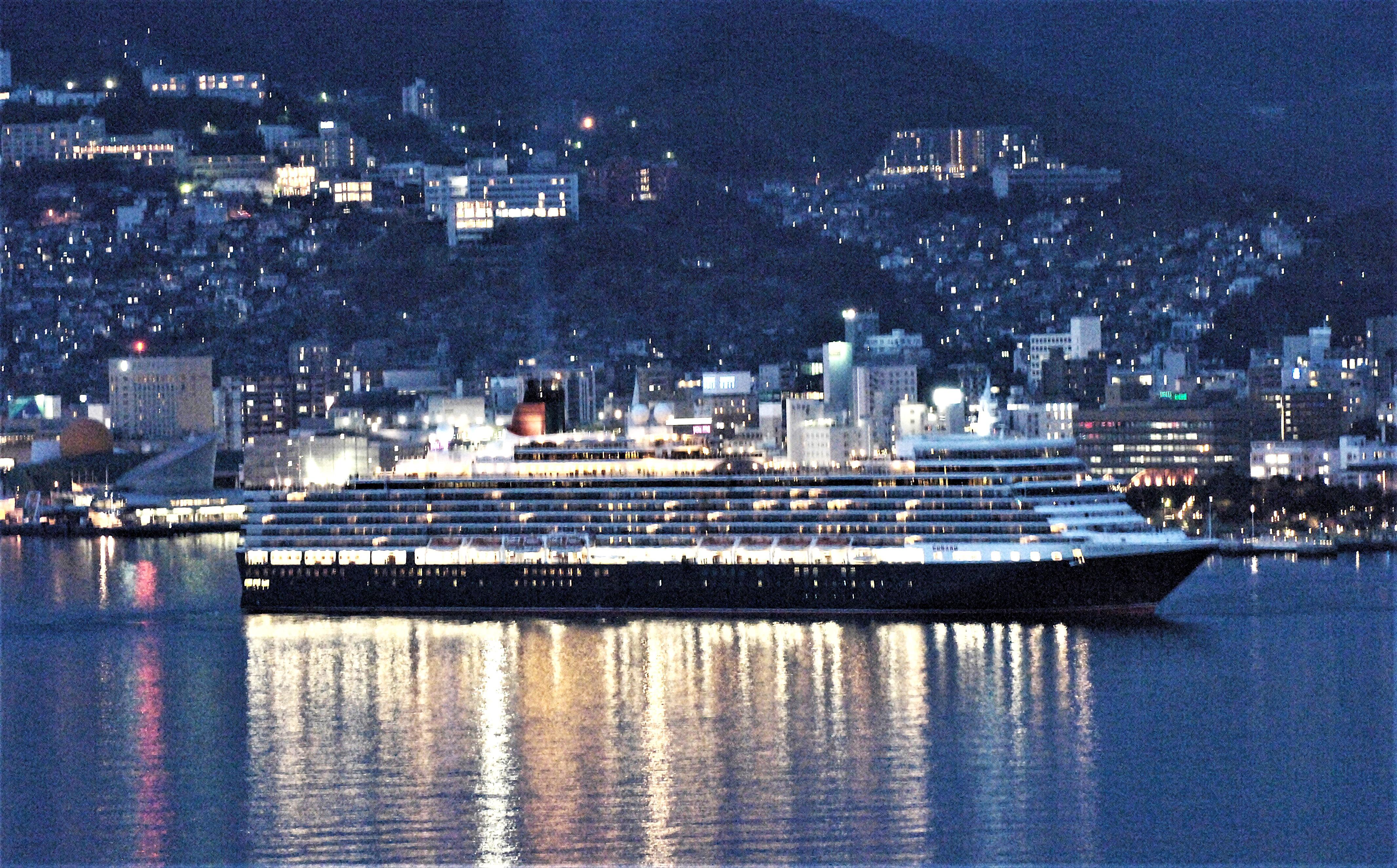 Queen Elizabethと長崎の夜景
