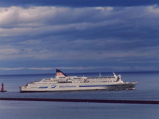 新日本海フェリー株式会社 (Shin Nihonkai Ferry Co., Ltd) 運航。 Built: 1991, IMO: 9006629, MMSI: n/a Gross tonnage: 19,904t, Length: 193.0m, Beams: 29.0m |
