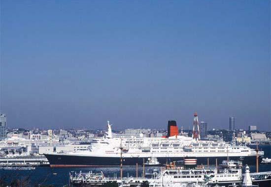 横浜港の「クイーンエリザベス2」 |