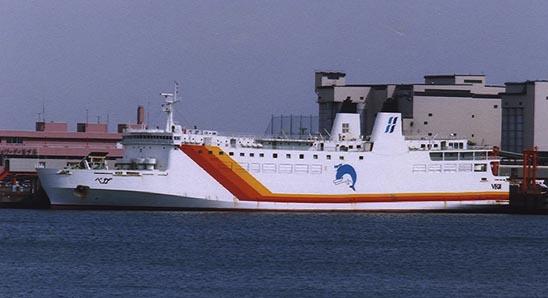東日本フェリー株式会社 (Higashi Nihon Ferry Co. Ltd.) 運航。 Built: 1973, IMO: 7332672, MMSI: n/a Gross tonnage: 6,702t, Length: 136.6m, Beams: 22.4m |