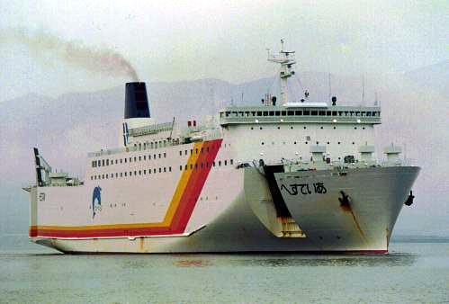 東日本フェリー株式会社 (Higashi Nihon Ferry Co. Ltd.) 運航。 Built: 1993, IMO: 9061590, MMSI: n/a Gross tonnage: 13,539t, Length: 192.0m, Beams: 27.0m |