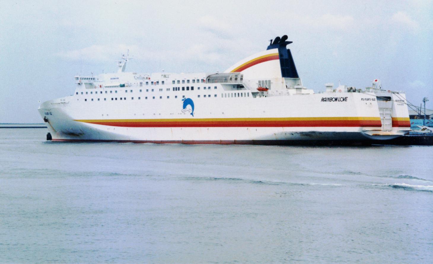 九越フェリー株式会社 (Kyuetsu Ferry Co., Ltd.) 運航。 Built: 1997, IMO: 9145047, MMSI: n/a Gross tonnage: 13,621t, Length: 195.0m, Beams: 27.0m |