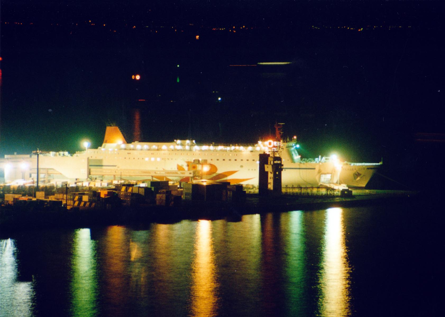 「さんふらわあさつま」、「さんふらわあきりしま」が未だ東京港に就航していた頃のショット。両船は一時期<東京・苫小牧>航路に就航した後、<東京・大洗・苫小牧>航路に就航しました。写真はテレコムセンター展望台からの撮影です。 |