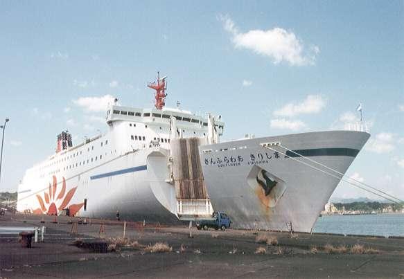 株式会社ブルーハイウェイライン (Blue Highway Line Co., Ltd.) 運航。 Built: 1993, IMO: 9035125, MMSI: 431586000 Gross tonnage: 12,438t, Length: 186.0m, Beams: 26.0m |