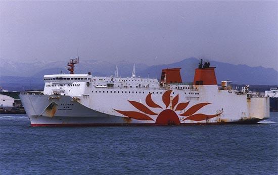 株式会社ブルーハイウェイライン (Blue Highway Line Co., Ltd.) 運航。 Built: 1989, IMO: 8806840, MMSI: n/a Gross tonnage: 11,272t, Length: 178.0m, Beams: 25.0m |