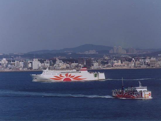 淡路島航路の小型フェリーと「さんふらわああいぼり」 |